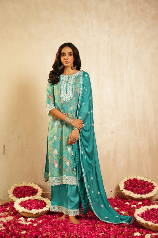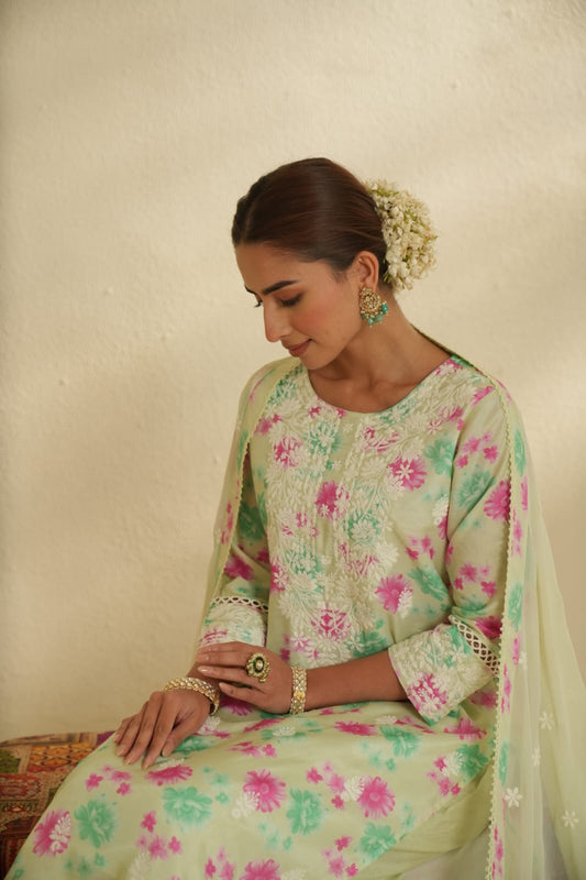 Maslin digital floral printed kurta pant set with digital printed dupatta